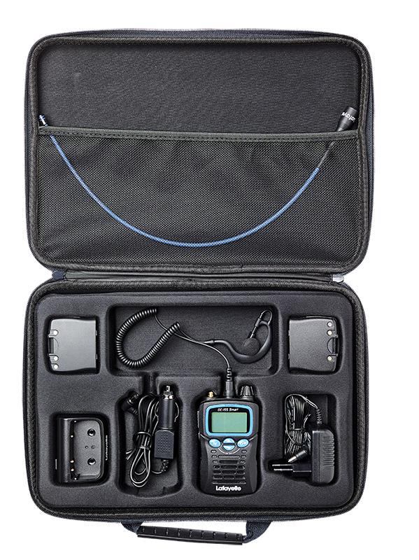 I Lafayette Smart kan du tack vare den digitala tekniken göra en räckviddstest. Bra när du t ex vill kolla om din jaktkompis som befinner sig längst bort i jaktområdet kan höra dig. Du behöver inte ropa över radion utan skickar i stället en signal som studsar tillbaka och bekräftar att ni har kontakt. Därmed stör du inte viltet i onödan. Det finns 15 förprogrammerade sms som du kan använda dig av när du inte vill prata. T ex ”Vilt nära passet” eller ”Jag är framme på passet”. Eller när hundföraren vill meddela att ”Hunden är släppt”. Vill du skriva ett eget sms kan du självklart också göra det.